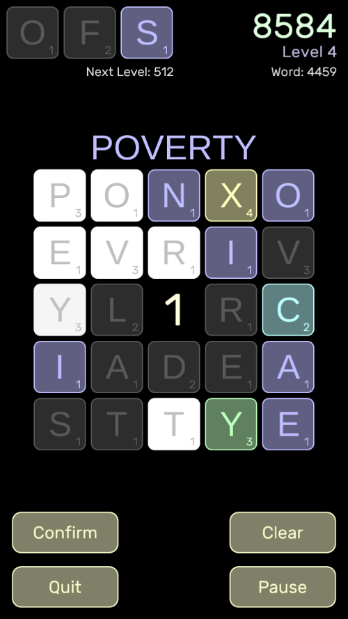 30 June 2016So one of the stories of the development of the word game so far is how the design has changed. The look, but especially the gameplay: it's hard to really describe how different it is — It's gone from a gadget to something with a fair amount of strategic depth (which, despite the kind of games I've done before, still surprised me. That's really not where I expected it to go at all).
